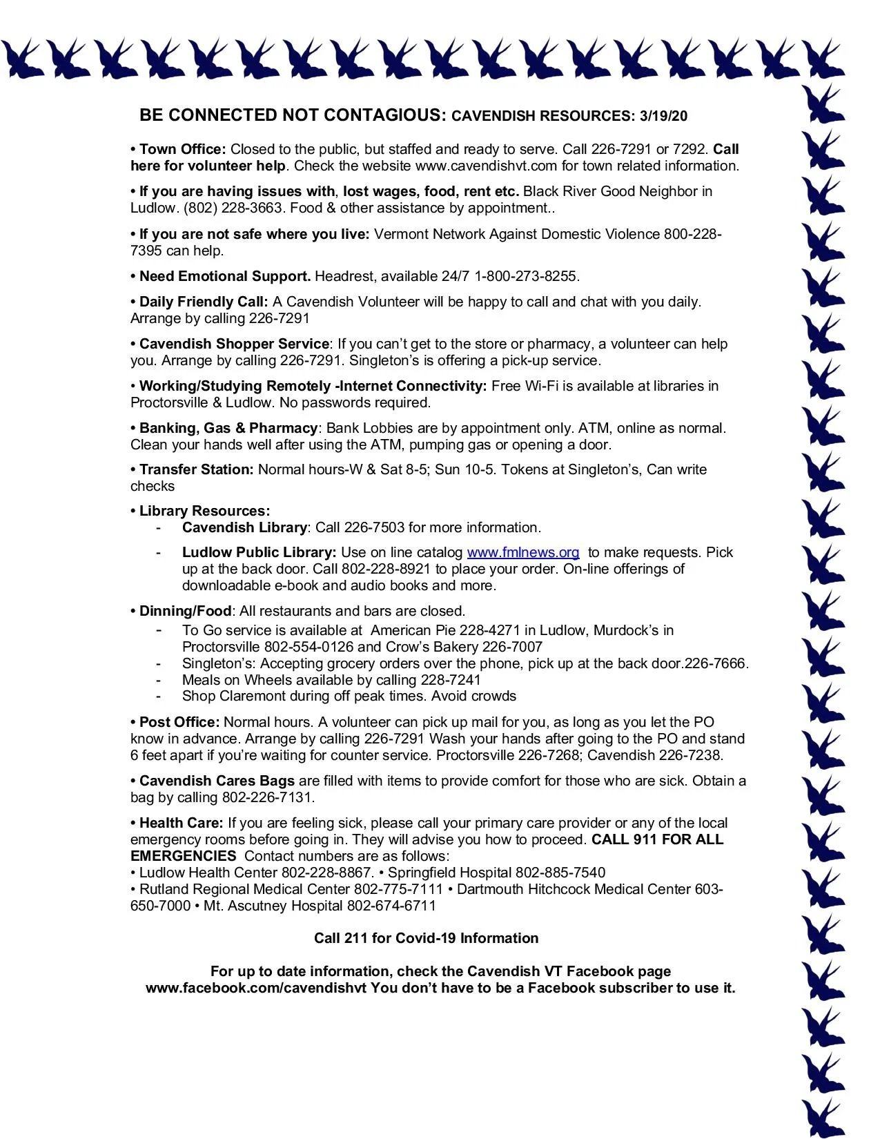 • Cavendish Business Directory Education Emergency Preparedness Environment & Sustainability Health & Senior Resources Resources for Business Owners Town Services Utilities