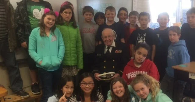 /Jim Hasson surrounded by his fans at CTES after giving a talk on Veterans Day.