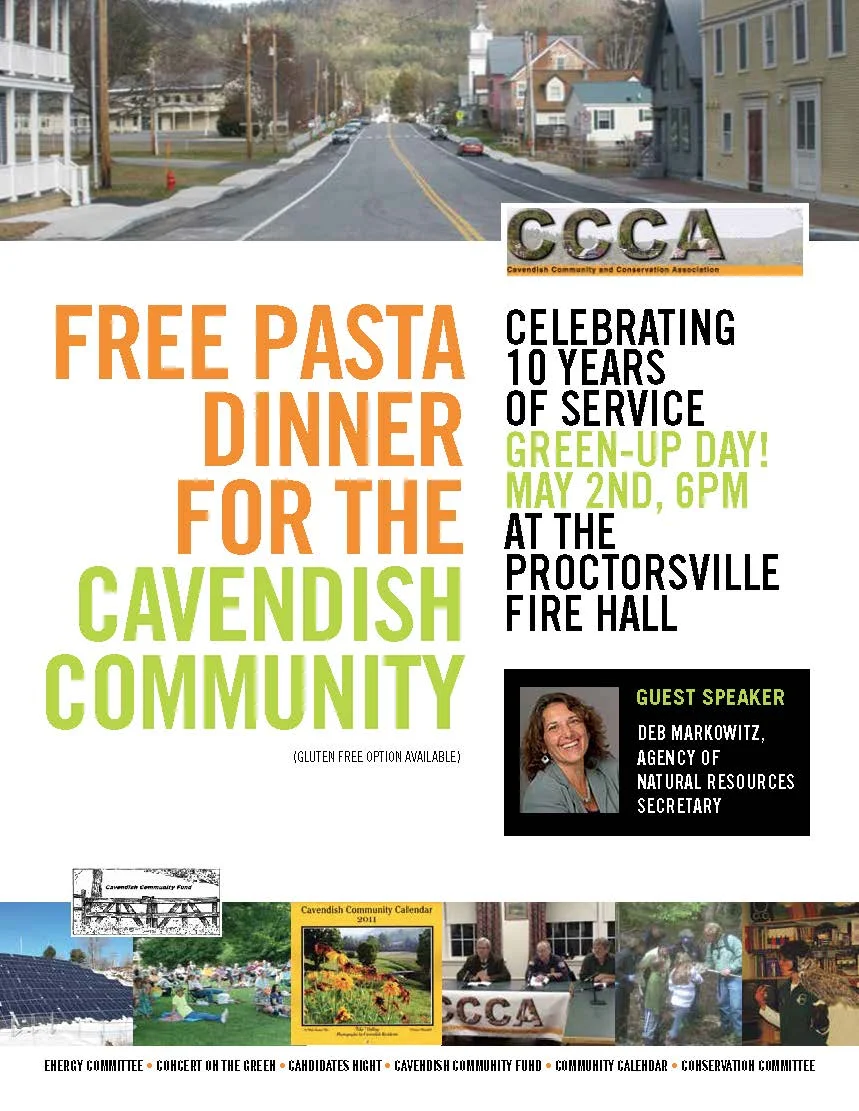 The Cavendish Community and Conservation Association (CCCA) is celebrating its 10th anniversary with a free community Pasta dinner.
