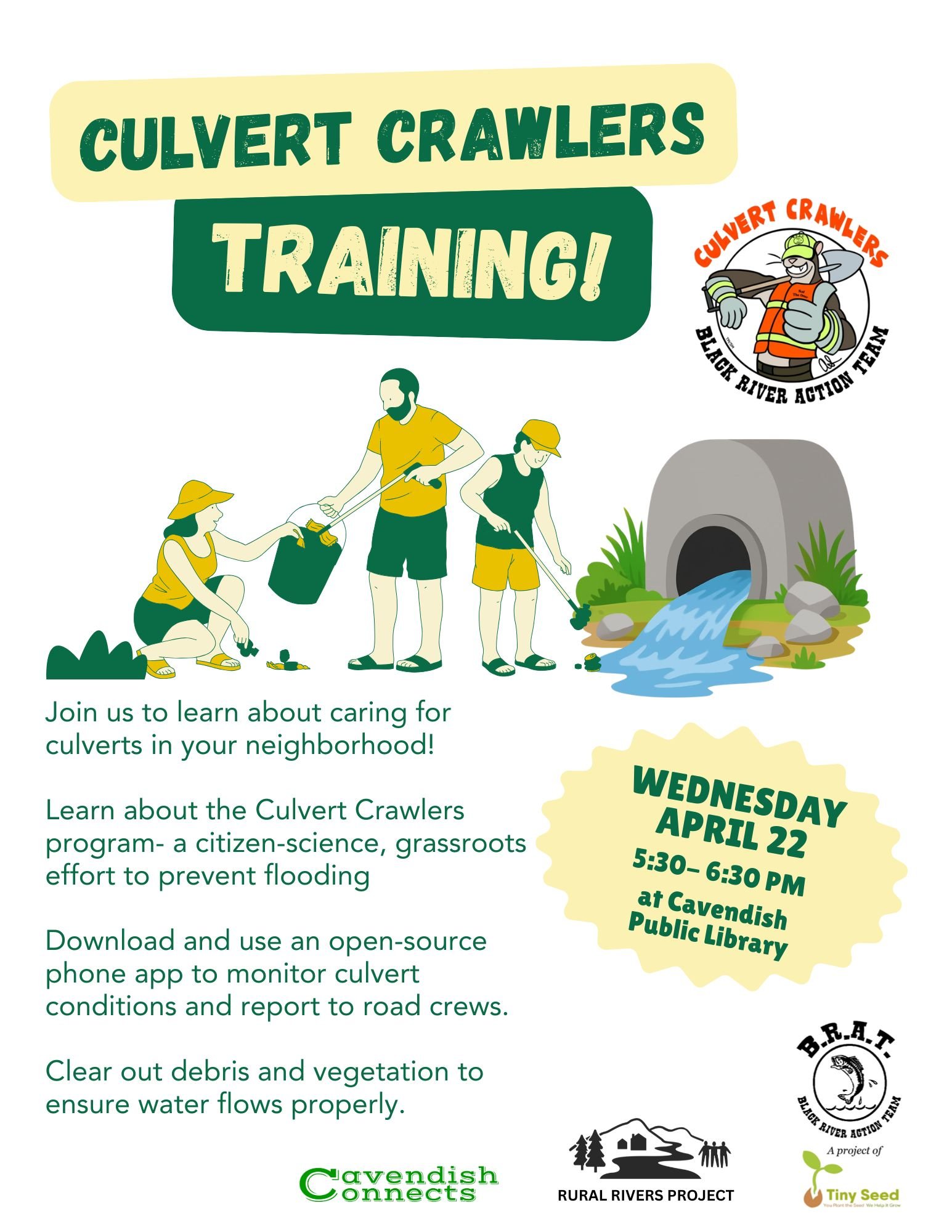 Culvert Crawlers is a citizen-science, grassroots effort to prevent flooding that is a collaboration with Black River Action Team, Cavendish Connects and the Rural Rivers Project at Dartmouth.